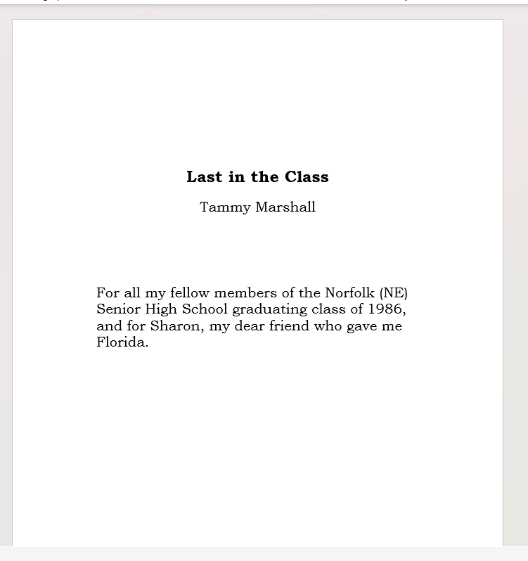 Read on for another piece of “Last in the Class” — a mystery/suspense novel.