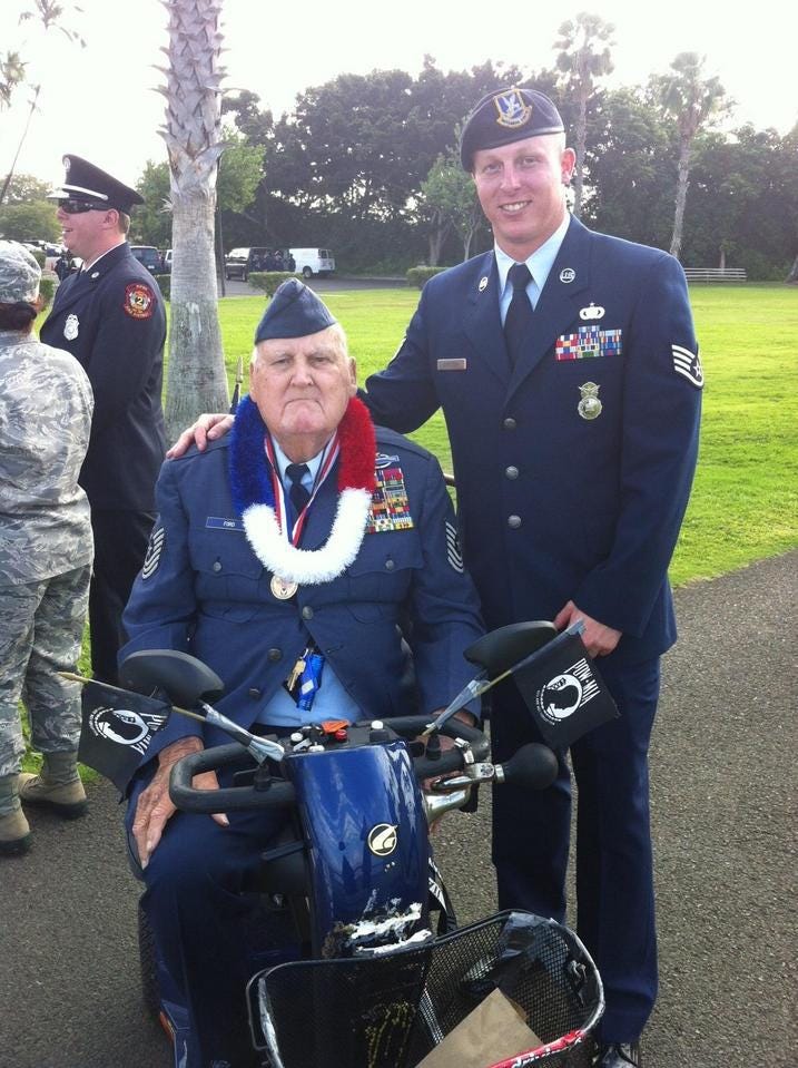 This photo was taken before I knew him, in 2012, by his father who had the honor of watching Trever be an escort for a Pearl Harbor survivor in Hawaii where Trever was stationed at the time. I met his father a couple years later and have been with him ever since. I had the honor of knowing Trever for almost five years before he became one of the far too many veterans who take their own lives after years of suffering from PTSD.